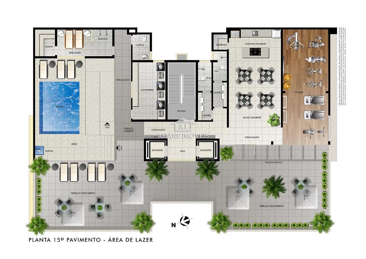 O condomínio é completo e moderno, oferecendo estrutura diferenciada. No rooftop, você encontra piscina, sauna, academia e um espaço gourmet perfeito para momentos de lazer. Há ainda lavanderia e sistema de CFTV nas entradas da garagem, tornando o ambiente ainda mais prático e seguro.