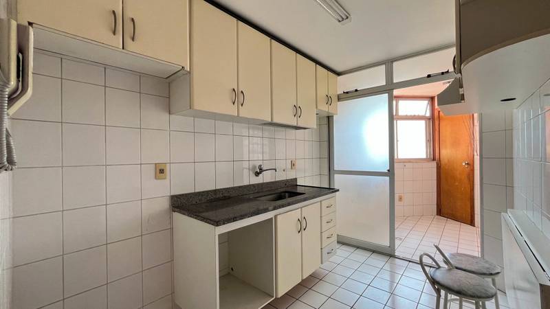 • Cozinha espaçosa com piso em cerâmica, bancada em granito e móveis embutidos.