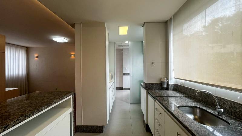• Cozinha americana planejada, com armários embutidos espaço otimizado;