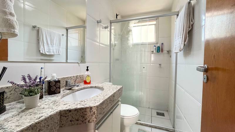 • Banheiros (social e suíte) com um excelente acabamento, armários, espelhos e box em blindex.