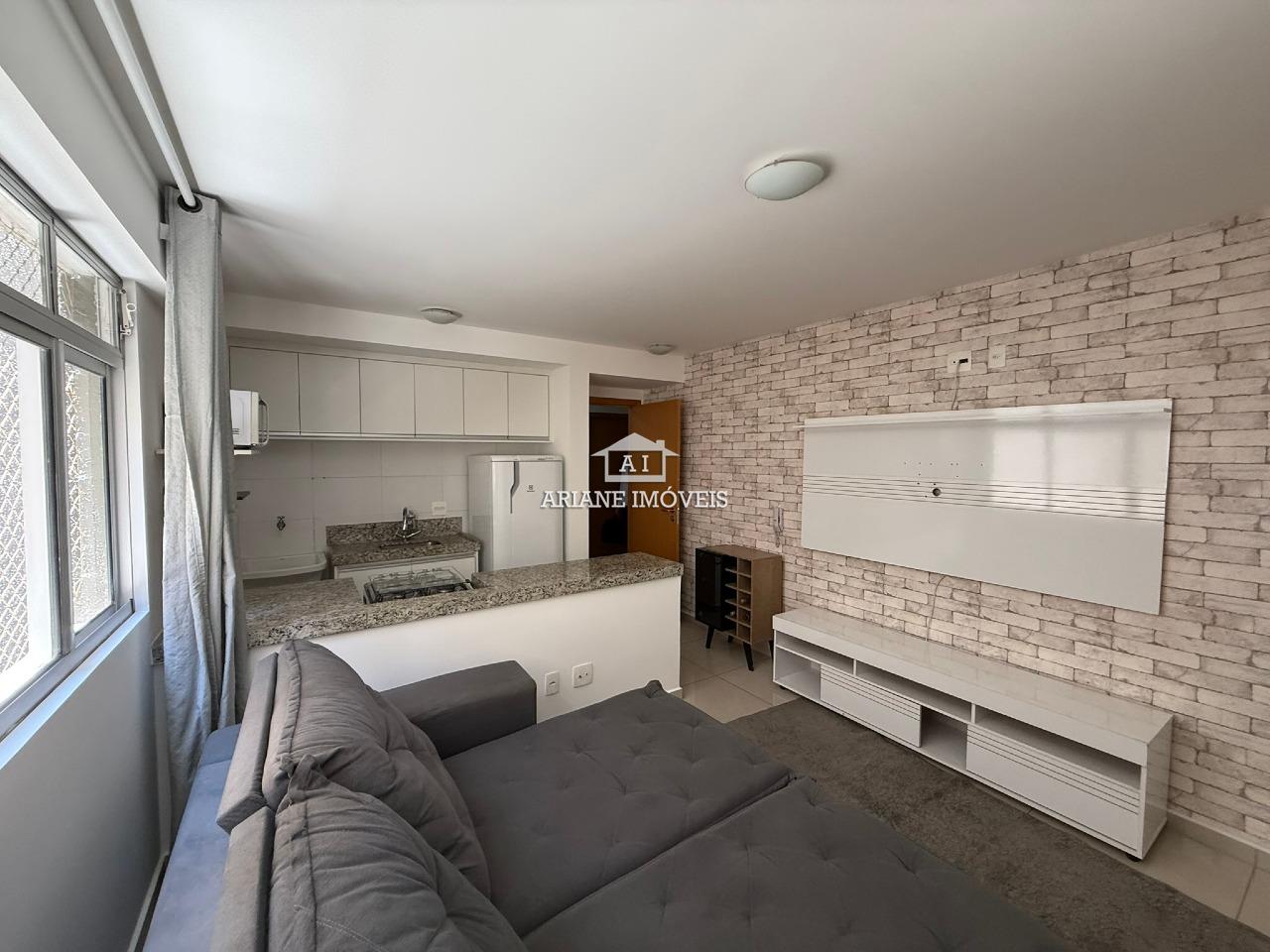 Apartamento funcional, bem iluminado e arejado, com excelente aproveitamento dos espaços. Possui sala ampla com ótima ventilação e janela de grande dimensão, cozinha com armários planejados e bancada em granito, 1 quarto com estrutura/ponto para TV, banheiro com box em vidro e área de serviço integrada.